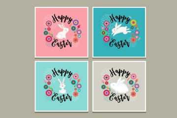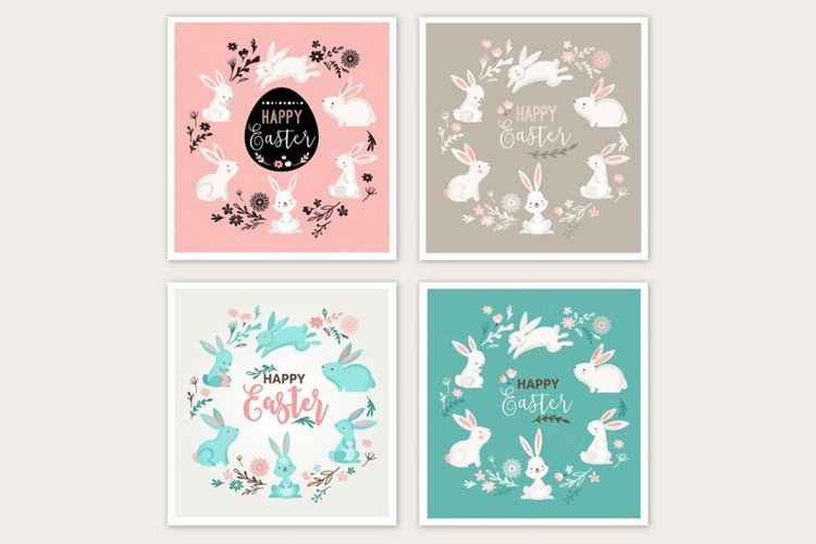 图穷联素材库 » 复活节兔子元素插画素材 Easter a huge col