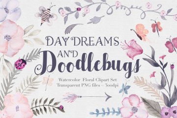 水彩花卉剪贴画集 Doodlebug Clipart Set