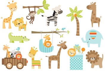 图穷联素材库 » 卡通婴儿动物插画 Baby Jungle Animal Gr