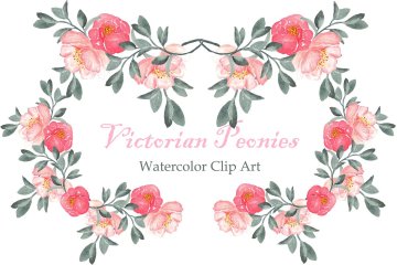 图穷联素材库 » 维多利亚时期的牡丹水彩剪贴画 Victorian Wate