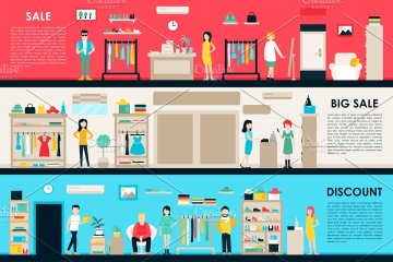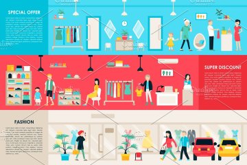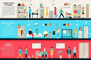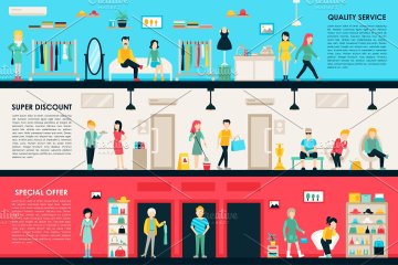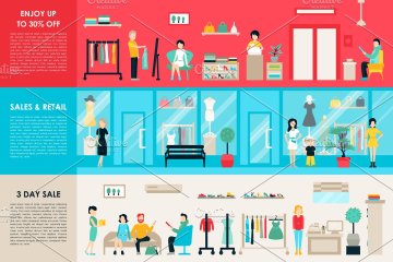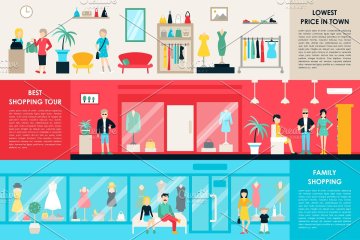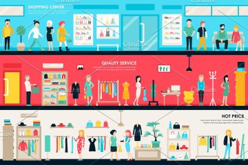 图穷联素材库 » 室内购物中心插画 Shopping Center Flat