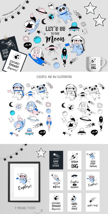 图穷联素材库 » 可爱的卡通动物宇航员插画素材 Space animals c