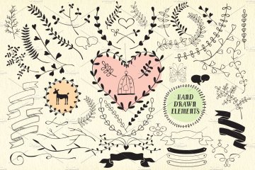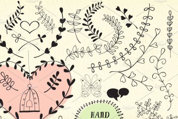 图穷联素材库 » 手绘矢量树枝元素插画 55 hand drawn vecto