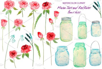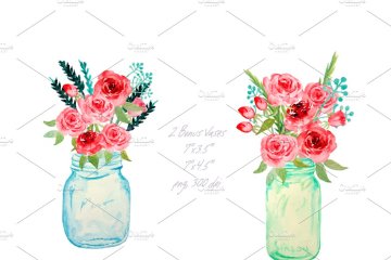 图穷联素材库 » 水彩罐子花卉插画 Watercolor Mason Jars