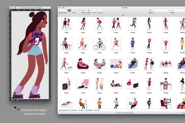 图穷联素材库 » 一组欧美时尚日常生活工作PNG人物角色插画