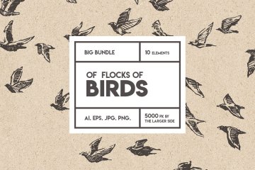 小鸟素描插画素材 Flocks of birds , ske