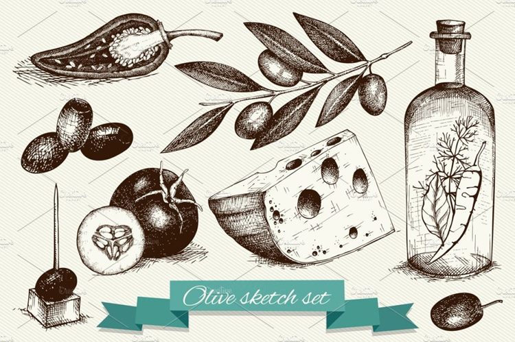 经典橄榄插画素材 Vintage Olive Illustr
