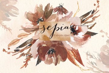 图穷联素材库 » 水彩花卉插画 Sepia flowers. Watercol
