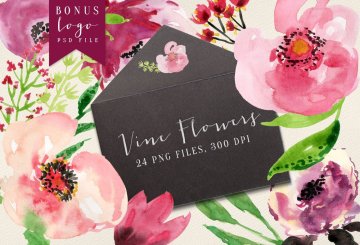 图穷联素材库 » 手绘水彩花卉插画 Vine Flowers