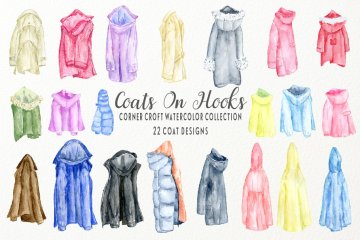 图穷联素材库 » 手绘外套袄子水彩插画 Coats and Hooks Pri