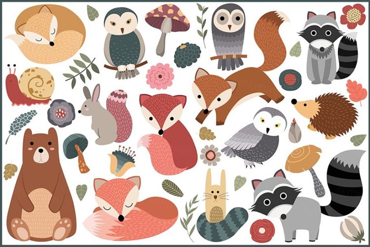图穷联素材库 » 森林动物设计图案 45 Woodland Designs
