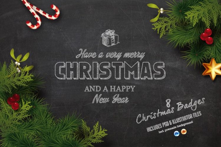 图穷联素材库 » 圣诞节粉笔黑板 Chalk Badges for Chris