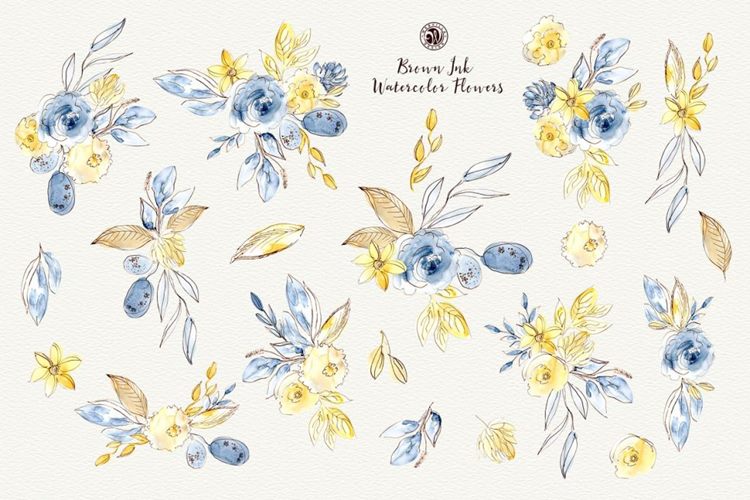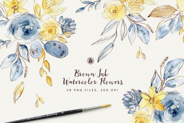 图穷联素材库 » 水彩墨水花卉插画 Brown Ink Watercolor
