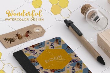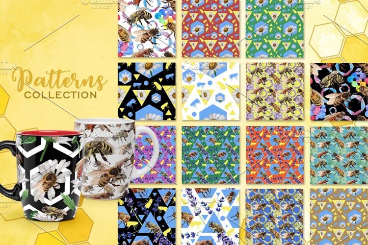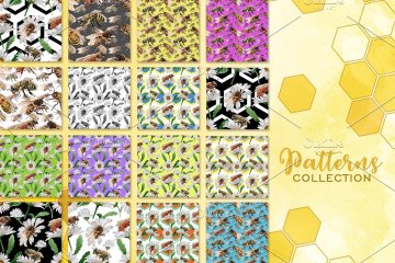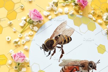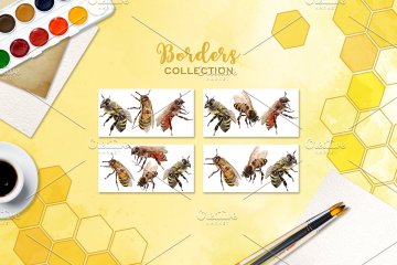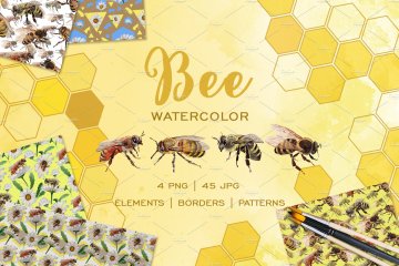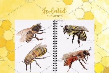 图穷联素材库 » 蜜蜂采集花蜜水彩元素剪贴画Bee Watercolor pn