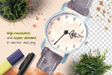 图穷联素材库 » 水彩手表插图 5 watercolor watches