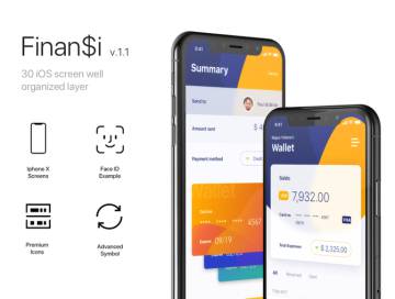 图穷联素材库 » 金融财务管理移动手机应用程序APP UI工具包Finansi iOS UI Ki
