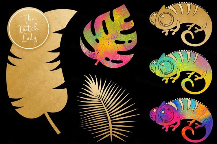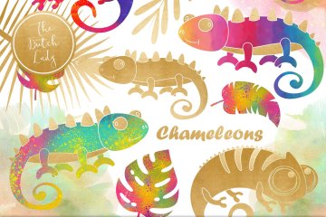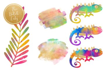 图穷联素材库 » 水彩变色龙时尚设计剪贴画集Chameleon Clipart