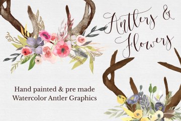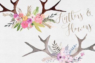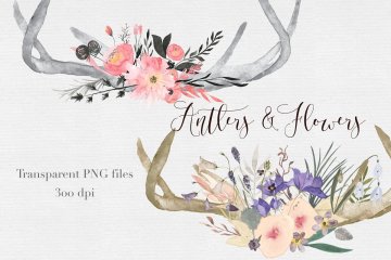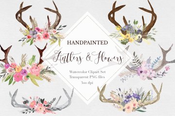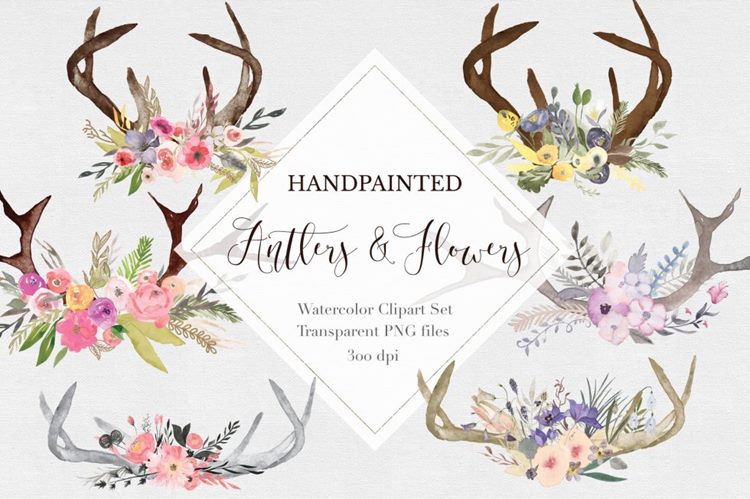 图穷联素材库 » 手绘鹿角剪贴画集 Hand painted Antler C