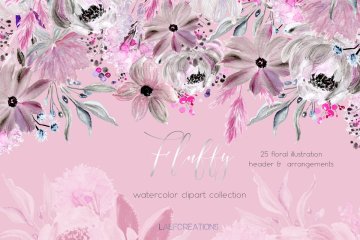 图穷联素材库 » 水彩花卉插画 Fluffy. Watercolor flor