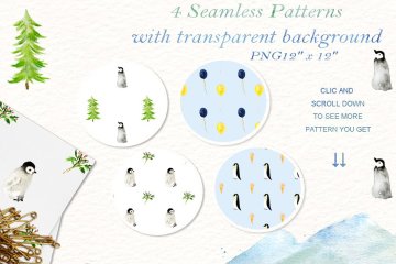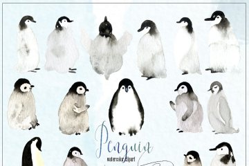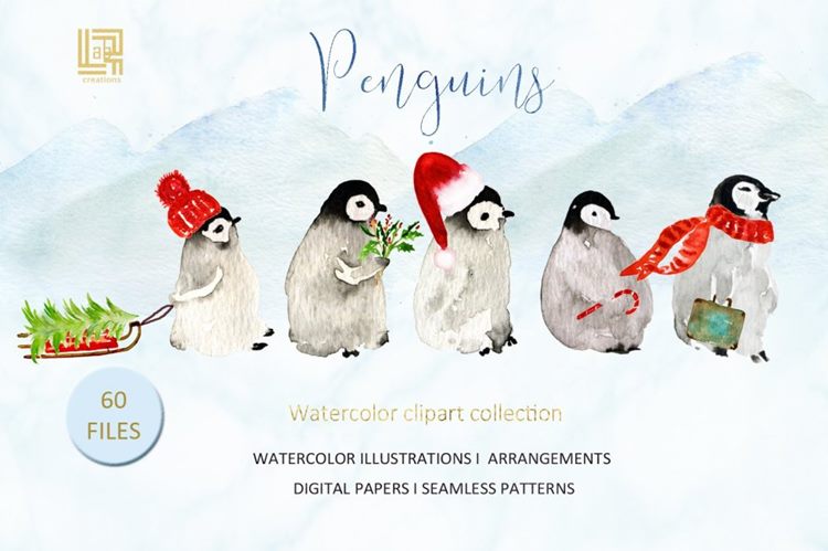 图穷联素材库 » 企鹅水彩插画 Penguins. Watercolor il
