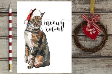 水彩猫插画剪纸 Watercolor Cat Illustr