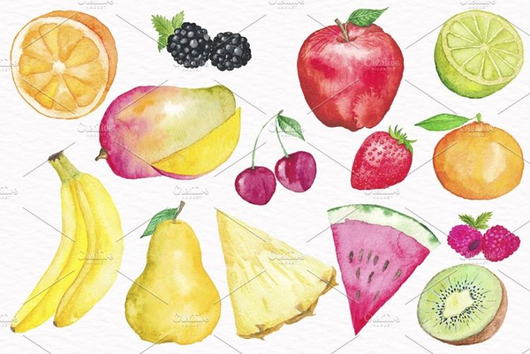 图穷联素材库 » 水果水彩插画集 Fruit Watercolor Colle