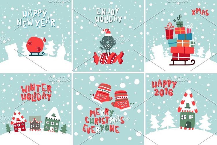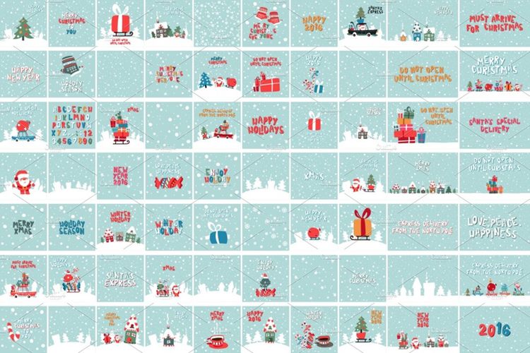 图穷联素材库 » 圣诞节新年插画 New Year 2016! 64 Illu