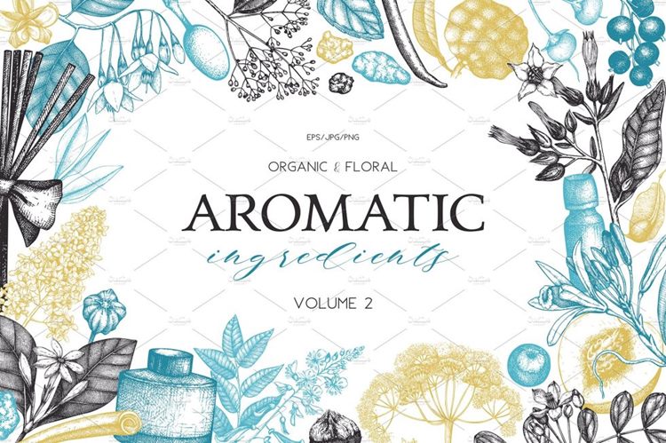 图穷联素材库 » 香料化妆品手绘水墨插画 Perfumery Cosmeti