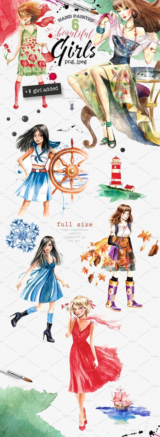 图穷联素材库 » 漂亮的女孩插画 6 Beautiful girls