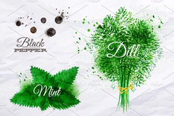 图穷联素材库 » 香草香料水彩插画背景纹理 Herbs spices wate