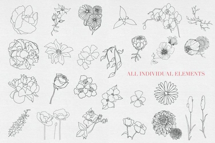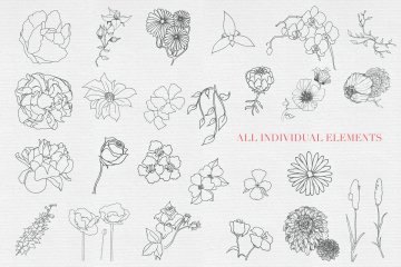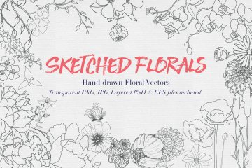 图穷联素材库 » 铅笔手绘素描矢量花卉素材 Hand drawn Sketch