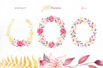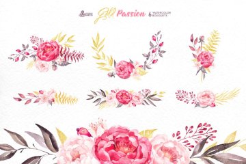 图穷联素材库 » 水彩花卉牡丹插画 Gold Passion. Floral
