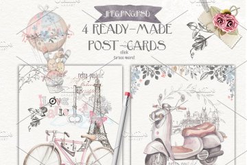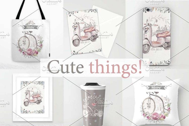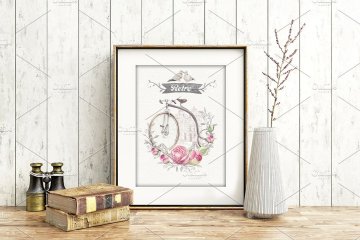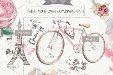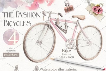 图穷联素材库 » 优雅文艺风自行车与玫瑰手绘插画元素 Bicycles and