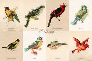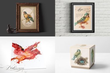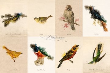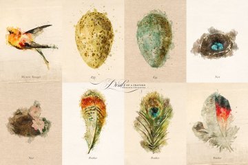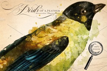 复古水彩鸟羽插画元素 Birds of a Feather