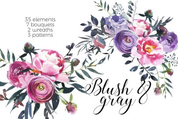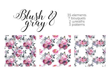 图穷联素材库 » 腮红和灰色水彩花卉插画 Blush Gray Waterc