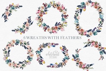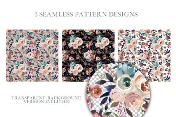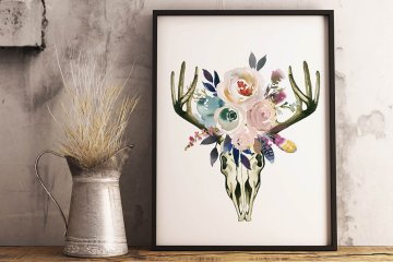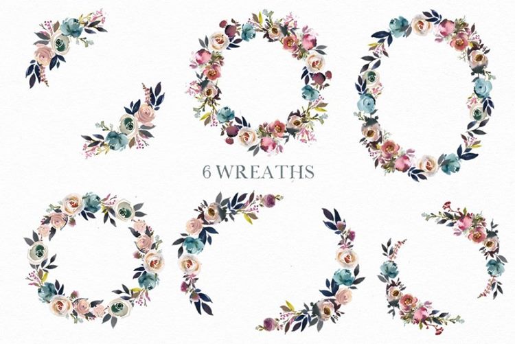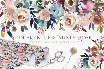 图穷联素材库 » 暗蓝色波希米亚风格水彩花卉插画 Dusk Blue Mist