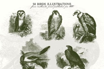 图穷联素材库 » 4复古鸟类插画素材 58 Birds Illustratio