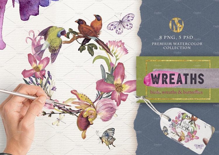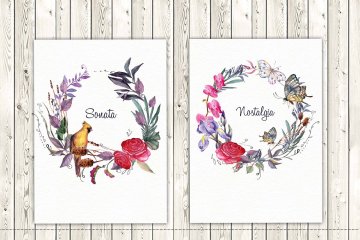 图穷联素材库 » 水彩花环插画素材 Watercolor wreaths vo