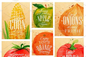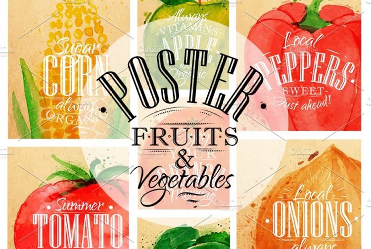 图穷联素材库 » 水彩水果蔬菜插图 Poster Fruits Vegeta