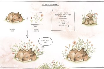 图穷联素材库 » 可爱的森林水彩插画 Watercolor Forest Ba