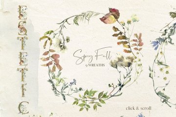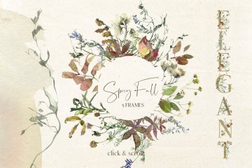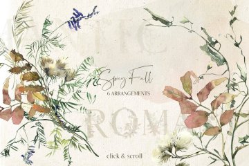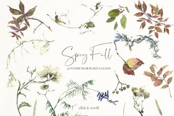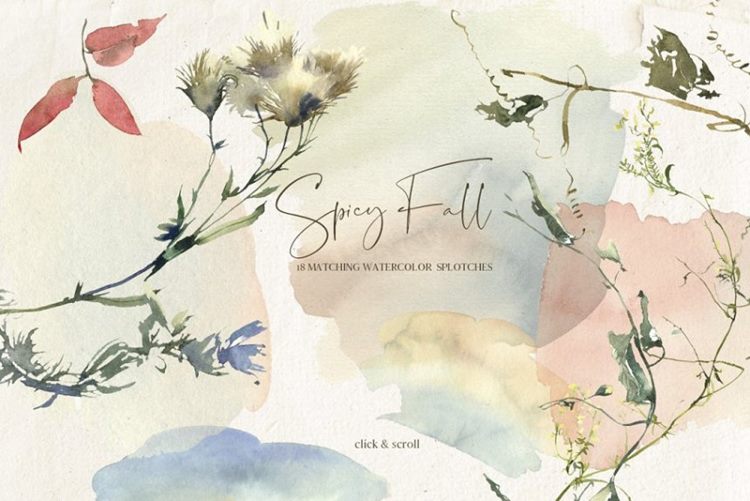 图穷联素材库 » 秋天花卉植物剪贴画 Spicy Fall Watercolo