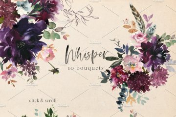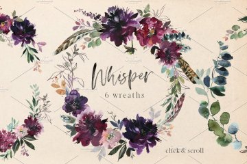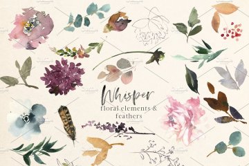 浪漫水彩花卉剪贴画 Whisper Watercolor F