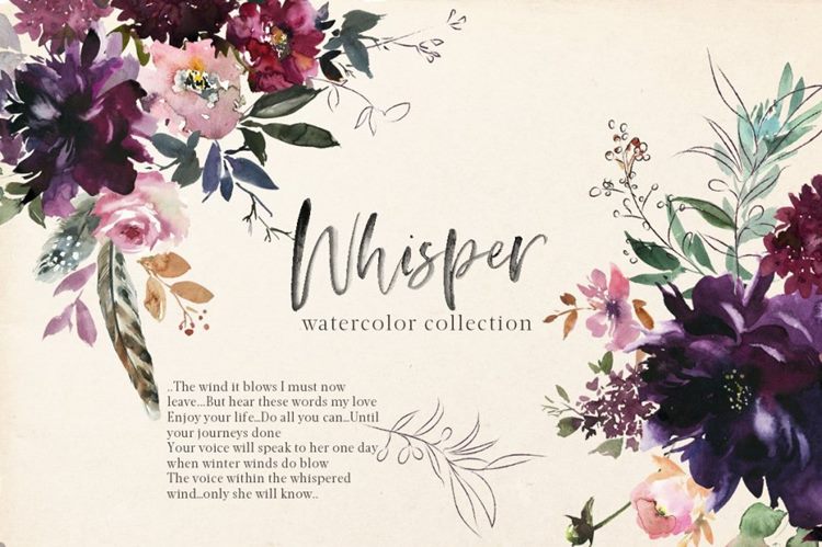 图穷联素材库 » 浪漫水彩花卉剪贴画 Whisper Watercolor F