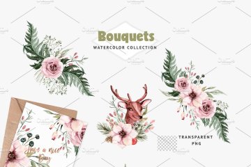 图穷联素材库 » 水彩森林剪贴画 Watercolor Forest Scen