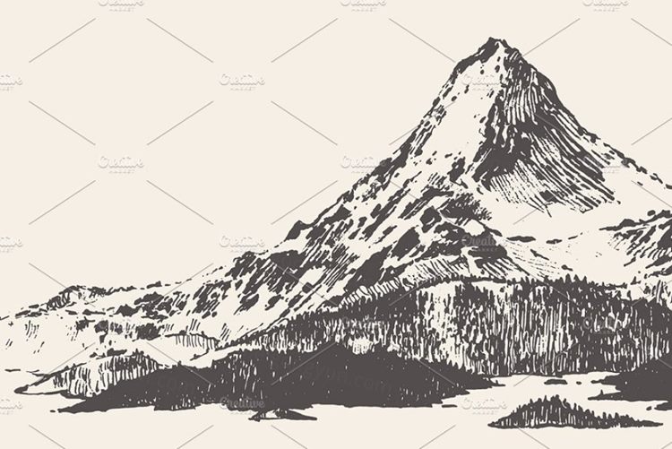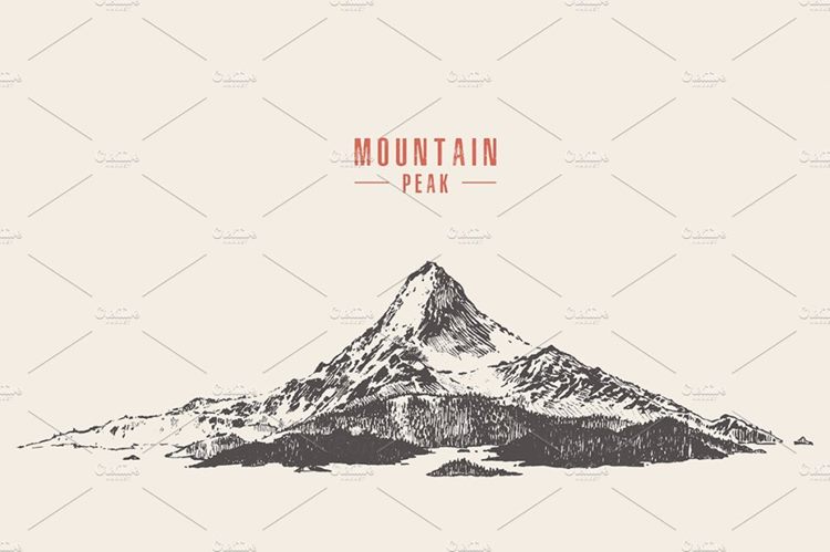 图穷联素材库 » 手绘山顶图 Mountain peak with pine