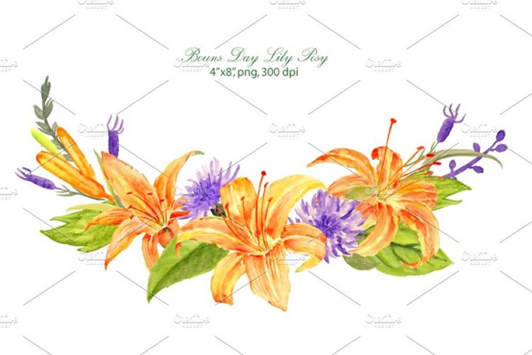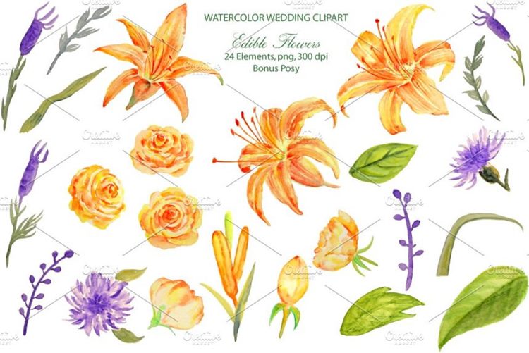 图穷联素材库 » 婚礼水彩橙色花卉 Wedding Orange Edible
