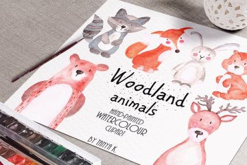 图穷联素材库 » 水彩森林卡通动物素材 Watercolor woodland