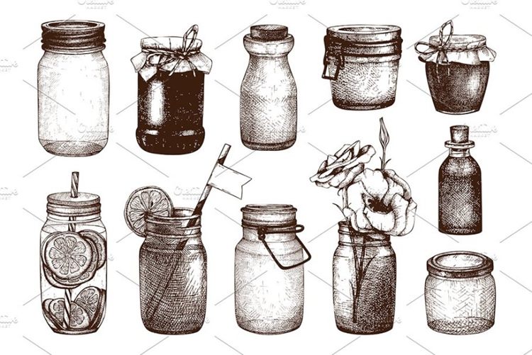 图穷联素材库 » 矢量罐子和瓶子插画 Vector Jars amp;amp;