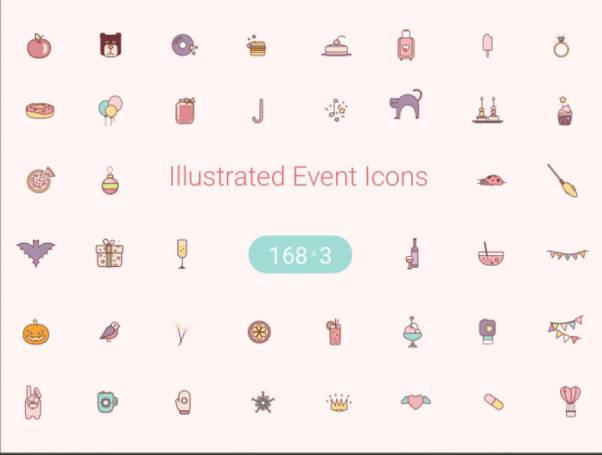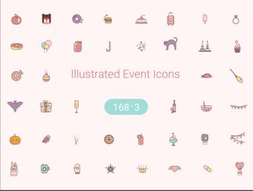 图穷联素材库 » 160+彩色扁平单色爱情故事派对时间舒适冬天主题矢量图标集Illustrated