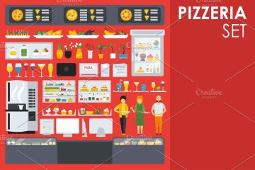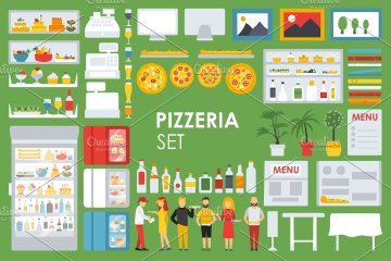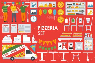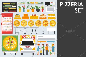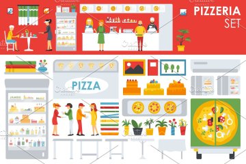 图穷联素材库 » 匹萨饼店相关的插画 Pizzeria Flat Object